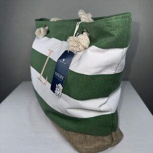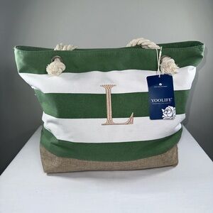 NWT Yoolife Large Canvas Personalized Beach Tote and Small Pouch Burlap Bottom