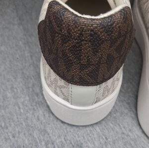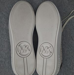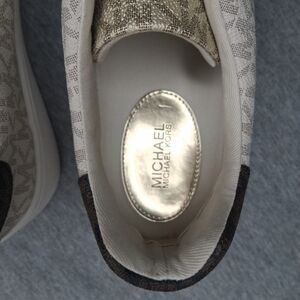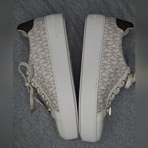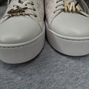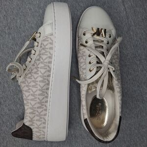 Michael Kors Women's Poppy Lace Up Vanilla Sneakers Gold MK Logo 8M