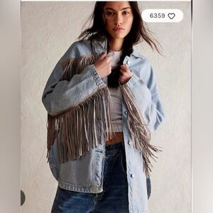 We The Free Light Blue Fringe Jean Jacket. Size small.