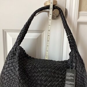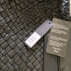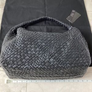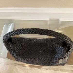 Falor Italy Handmade Black Woven Leather Large Shoulder Hobo Bag Magnetic Close