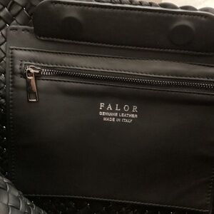 Falor Italy Black Woven Leather Large Shoulder Hobo Bag Handmade Magnetic Close