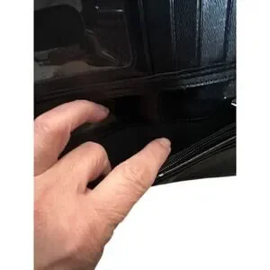 Detail: Shiny patent finish with fold-over design