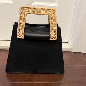 Chic structured black tote with a square woven handle. Perfect for vacations and all year round !