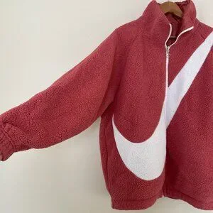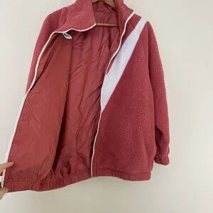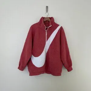 Nike Reversible Big Swoosh Full Zip Sherpa Jacket in Pink Size XS