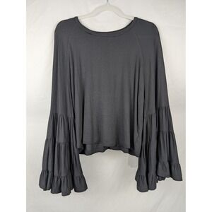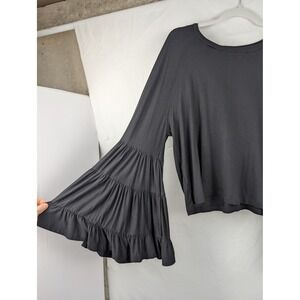 Black Long Sleeve Tiered Ruffle Bell Sleeve Top Blouse S Whimsigoth Grunge Boho
