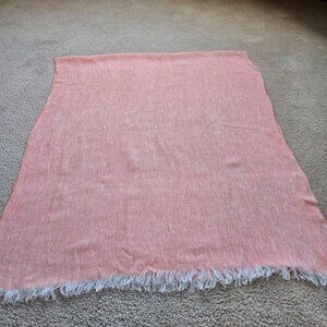 Color is a salmon/coral pink. Large linen scarf in perfect condition. No holes, pulls, runs, stains, pet hair, or odors.