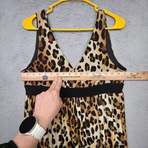 Zealous Babydoll Dress Womens L Maxi V Neck Animal Print Maximalist Leopard Long