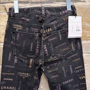 Chanel Logo Print Jeans Black Multicolor Denim NWT Size 38 FR / US 6