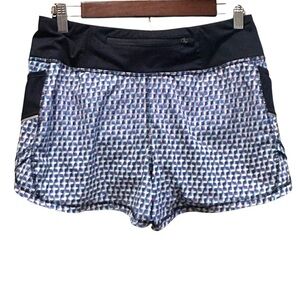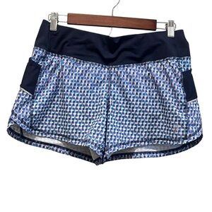 Athleta Ready Set Running Shorts Blue Tone Multi-Color Geo Design Size Small