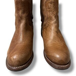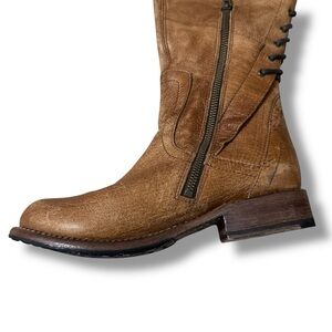 Bed Stu Surrey Tall Lace Up Boots Caramel Brown Distressed Leather Women’s 8