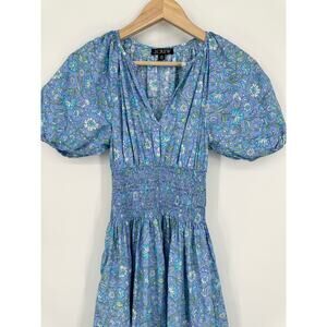 J. Crew Provence Smocked Waist Midi Dress Puff Sleeve Floral Marigold Blooms