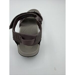 The Teva Tirra Taupe & Purple Adjustable Straps Hiking Sandal 4266 in Women's Size 11 is a versatile and comfortable option for outdoor activities. Featuring a flat heel and adjustable straps, these sandals offer arch support and breathability, making them ideal for hiking, travel, and casual wear. The strappy design and solid color pattern in taupe and purple add a stylish touch to these functional sandals. With a rubber outsole and synthetic lining and upper material, these Teva sandals are durable and perfect for the summer, fall, and spring seasons.