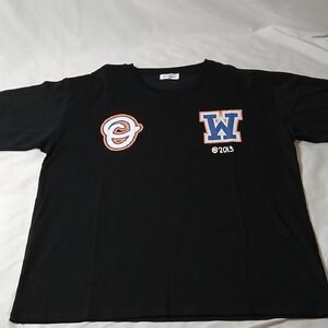 Stylish black tee with bold graphic designs. Comfortable short sleeves. Perfect for casual wear.