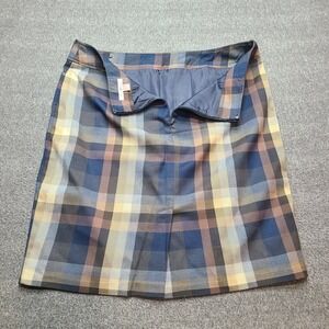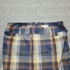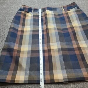 Roz & Ali Plaid Knee Length Skirt Women Size 16 Blue Brown Tan Career Casual