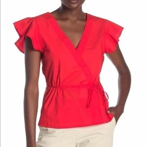 J. Crew J. Poplin Flutter Sleeve Wrap Top