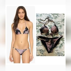 Vix Krishna Detail Bikini Set L Black Feather Print Triangle
