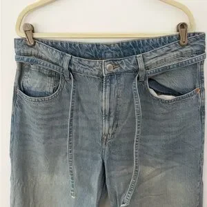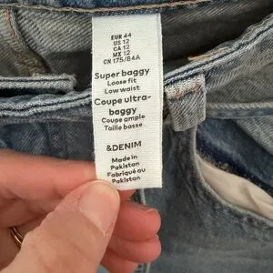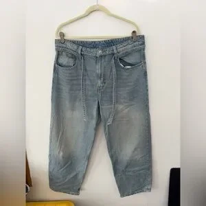 H&M super baggy loose fit low waisted button fly and drawstring closure.
