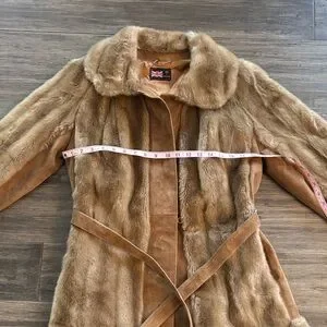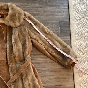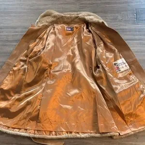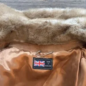 London Leathers by Lilli Ann made in England, Excellent condition, light brown, faux fur jacket with real suede accents, I love this coat so much. It looks like real fur, but it’s not, it’s got a great style. All closure hooks work properly, two side pockets, and a belt, inside fully lined. No size listed but based on measurements can fit a small/medium.