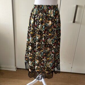 ZADIG & VOLTAIRE High Low midi lace trim skirt with skull 💀 pattern