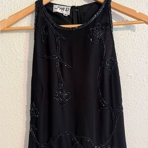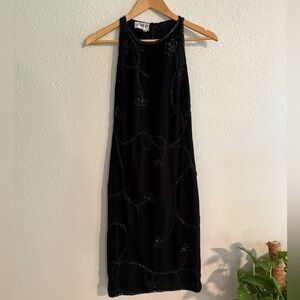 Stunning 90s floral beaded embroidered black high neck midi dress #whimsygoth #fairy #90s #beaded #beadeddress