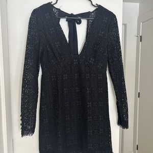 Chic black lace dress with long sleeves. Perfect for elegant occasions. Stylish and sophisticated.