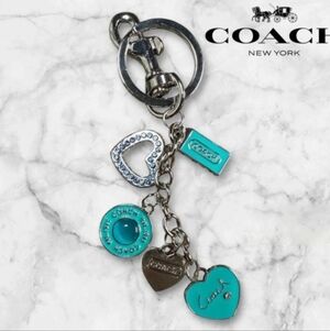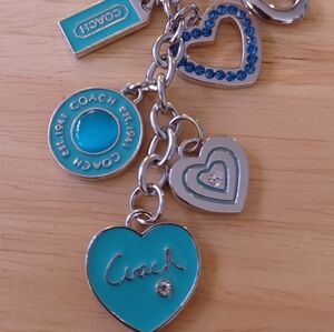 GORGEOUS BLUE COACH BAG CHARM. MULTIPLE COACH metal Tags and Hearts on a heavy duty bag charm.