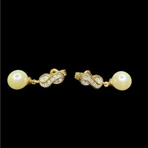 Nina Ricci Gold Tone and Pearl Clip On Earrings