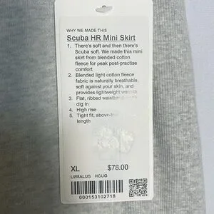 NWT Lululemon Scuba High-Rise Mini Skirt Size XL Heathered Core Ultra Light Grey