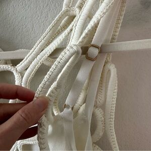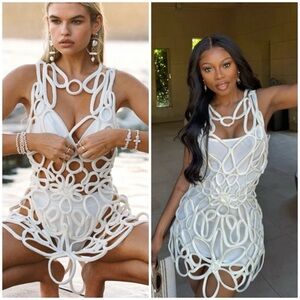 Cult Gaia Danica Crochet Sheer Mini Dress Coverup Off White SZ S