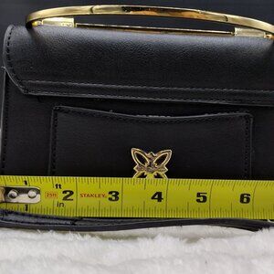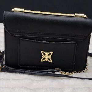 BCBGMAXAZRIA Black Sling / Mini Satchel/Crossbody Bag with Gold Clover Logo
