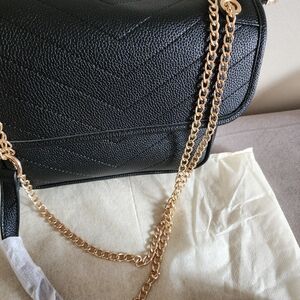 Designer Look NWT 2 PC. Black VEGAN Leather Chain Shoulder Bag with WALLET
