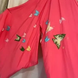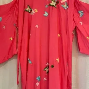 Vintage Japanese Silk Kimono Embroidered Butterflies