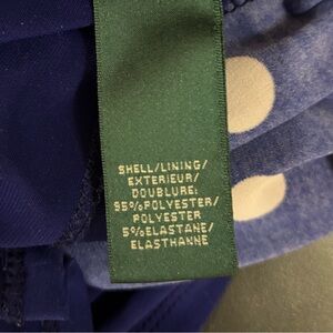 Lauren Ralph Lauren Dress Womens 14 Blue White Polka Dot Cowl Neck Ruched Sheath