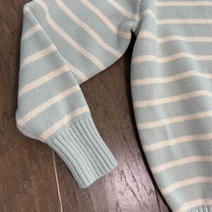 Cozy knit Brandy Melville cotton crew neck sweater. Heavy fabric, very comfortable. Color is a light and warm minty green with cream stripes. Wide cuffs. Fits medium/large.