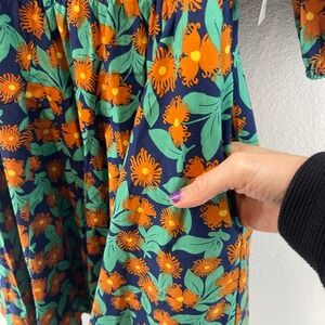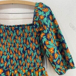 NWT NORDSTROM Melloday Smocked Dress Pocket Floral Navy Orange Puff Square Neck