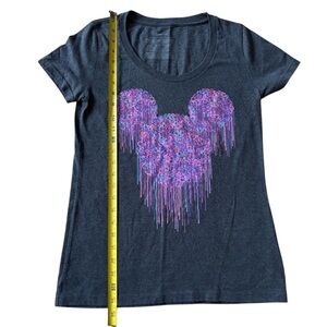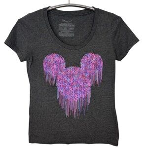 Disney Women’s Charcoal Gray T-Shirt with Dripping Purple Mickey Size Medium
