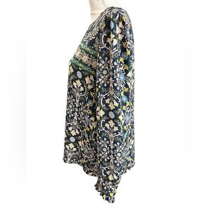 LOFT Floral Long Sleeve Blouse Navy Green Yellow Boho Top Size M