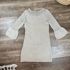 Lilly Pulitzer Carino Sweater Gold Metallic Dress Gorgeous Shimmer Beige Dress