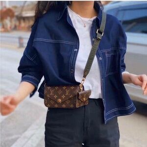 Stylish brown monogram crossbody bag perfect for any occasion. Features a sleek design with a convenient strap for easy carrying.