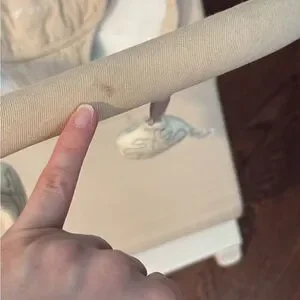 small spot on hand bar (pictured) chair has been recently washed. folds down small for carrying