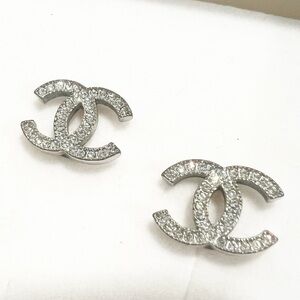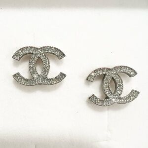 Dazzling CHANEL earrings with sparkling crystals. Iconic design for timeless elegance.