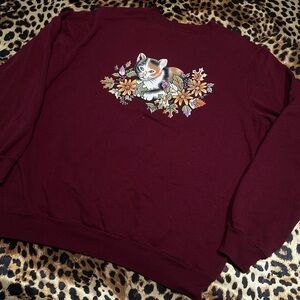Vintage Blair Burgundy Autumn Cat Crewneck Sweatshirt