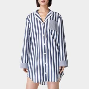 Sweaty Betty Blue Stripe Print Restful Oversized Sleep Shirt in Navy Blue White Women’s