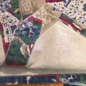 - the floral print has a patchwork look to it