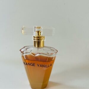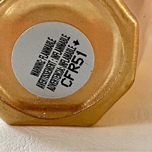 Elegant fragrance in a faceted amber bottle. Features a clear cap with gold detailing.
