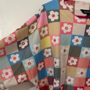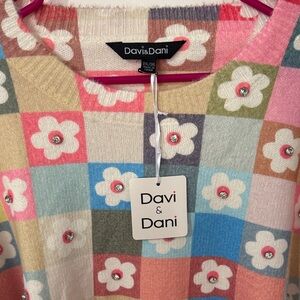 Colorful Floral Patchwork Sweater with rhinestones brand Davi and Dani NWT