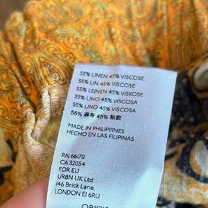 Additional Details: Breezy and chic, elastic waistband with attached tie belts, pull on style, linen/viscose blend