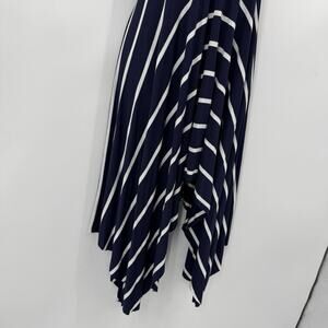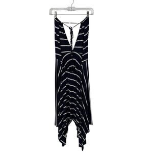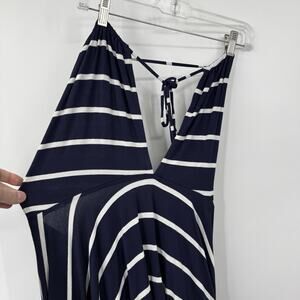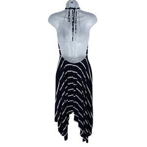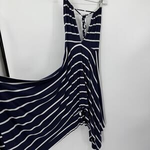 Elan Beach String Halter Dress medium Navy Blue Striped Asymmetrical high-low/A-line Hem Midi