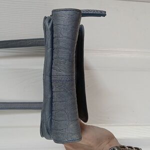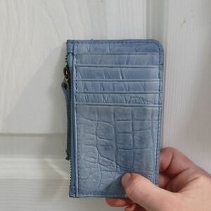Y2K light blue American Leather & Co. Croc Embossed Crossbody bag with matching croc embossed wallet. Elevate your style with this chic light blue crossbody bag & matching wallet. Its sleek design and versatile color make it a perfect accessory for any outfit. The zipper pouch has a big slip pocket & 3 credit card slots & an ID slot with a slip pocket for your bills. In excellent condition with very minimal wear