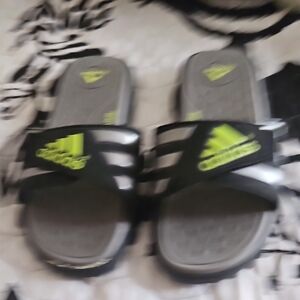 Adidas Adult Men's Slide Sandals - Black and Neon Yellow
